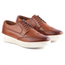 Basket basse en cuir crust marron. Un modèle lacé au look casual chic avec des coutures latérales sur la tige.