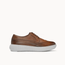 Basket basse en cuir crust marron. Un lacé de style artisanal. Semelle en caoutchouc nature, couleur blanche .